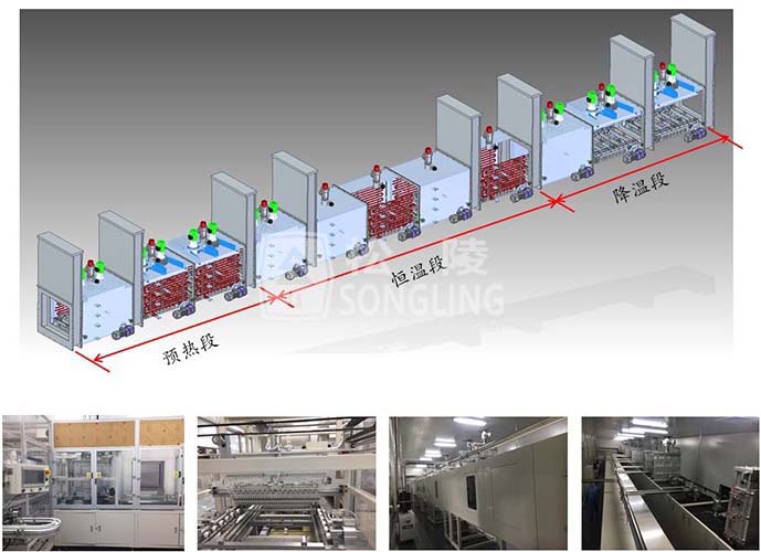 隧道式全自動(dòng)真空烘烤線是根據(jù)客戶現(xiàn)有生產(chǎn)和工藝需要,專門開發(fā)的一款電池注液前烘烤的自動(dòng)真空隧道式流水線;如果更換相關(guān)工裝夾具,同時(shí)也可以進(jìn)行極卷的烘烤和電芯規(guī)格烘烤。